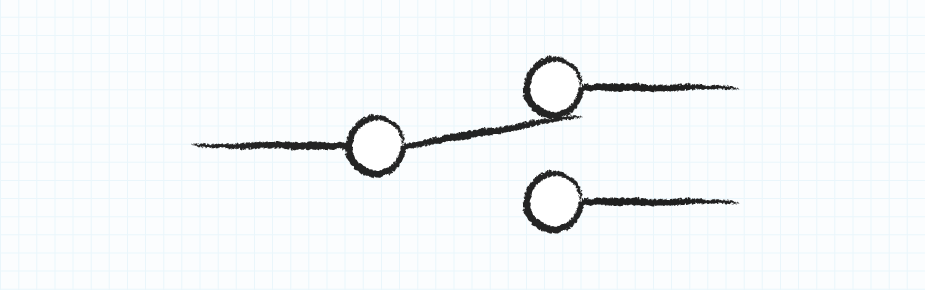 単極、双投(SPDT)スイッチは、電流を流すのに2つの異なるパスから選択します。 言い換えれば、アクチュエータを動かしても、電流は遮断されず、代わりに、別の回路分岐へと方向転換させます。